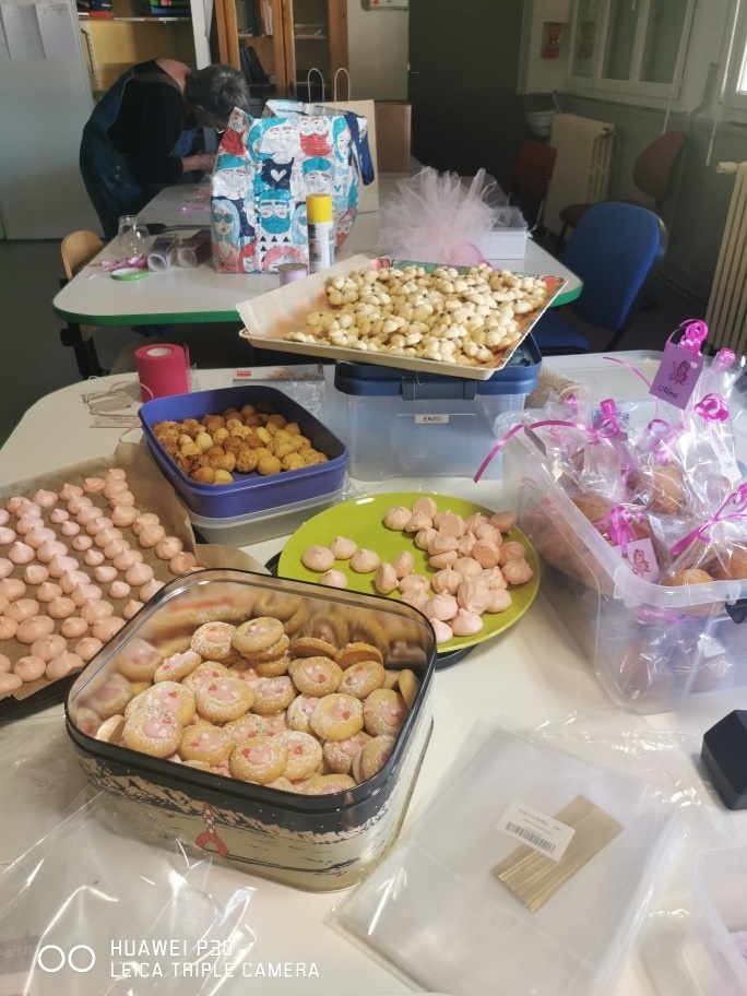 • La vente de biscuits MAISON réalisés par les enfants et l’équipe éducative à l’occasion du marché du Mercredi 15 octobre. Malgré le brouillard, la solidarité était présente, plus de 300€ ont été récoltés pour ACTION CANCER 47. Un grand MERCI aux donateurs.